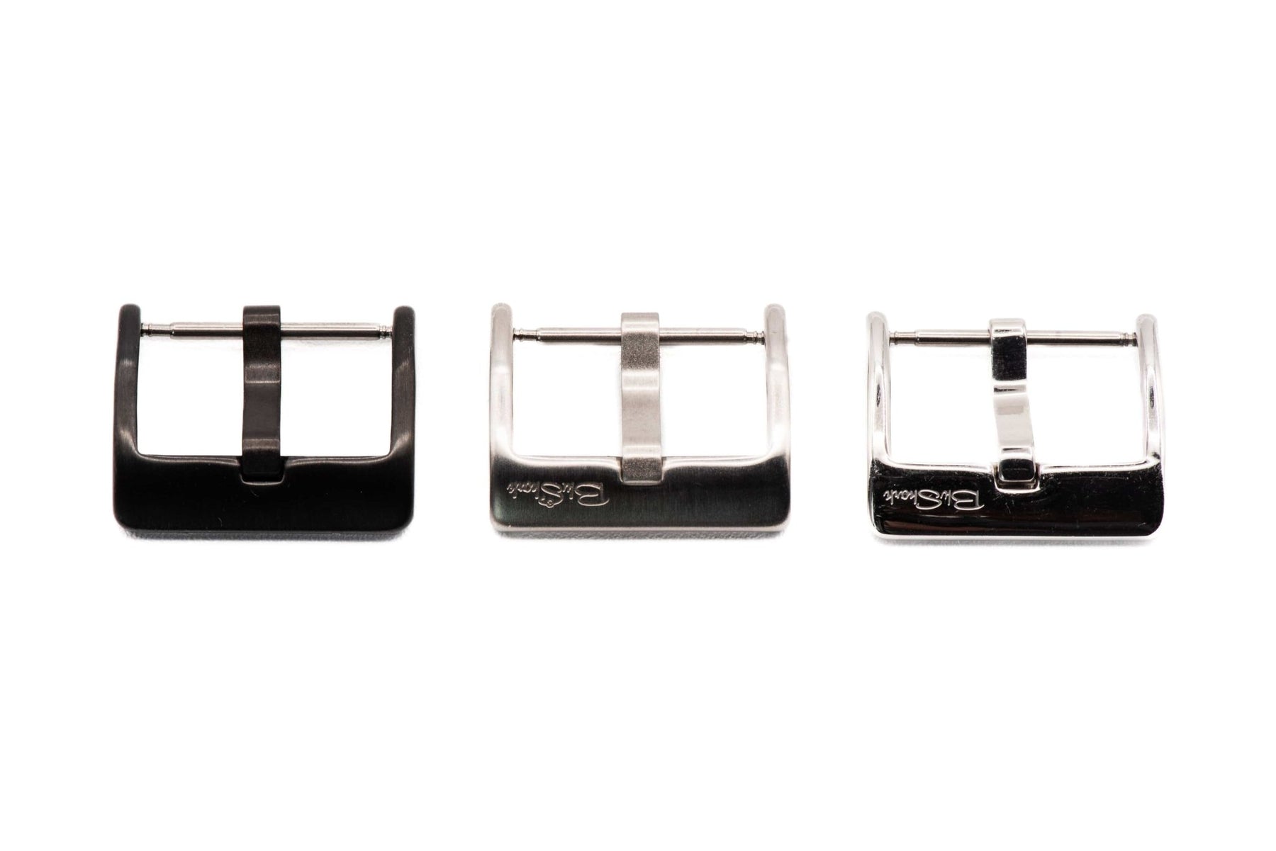 The BluShark Buckle is used on the majority of our straps and is available with Brushed, Polished, or PVD Black finish. All buckles include a 3mm wide tongue and a spring bar. Buckles are offered in sizes 16mm, 18mm, 20mm, and 22mm.