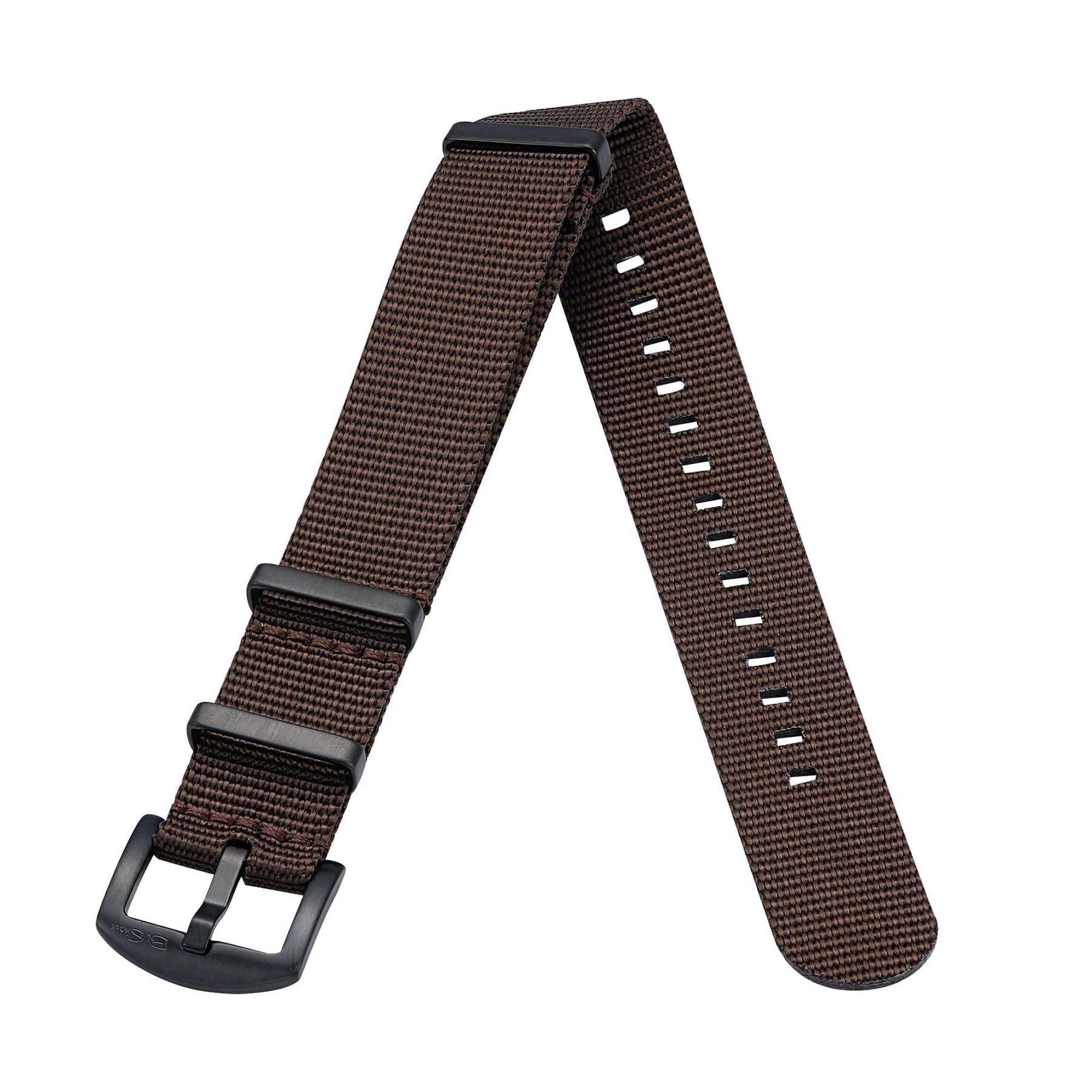 The double-pass military-style design adds an extra layer of security while keeping the watch comfortably in place, and the Original BluShark brushed stainless steel buckle provides reliable strength. Two thick keepers, one fixed and one sliding, let you dial in the perfect fit, and all hardware is stitched in place (never glued) for long-lasting durability.