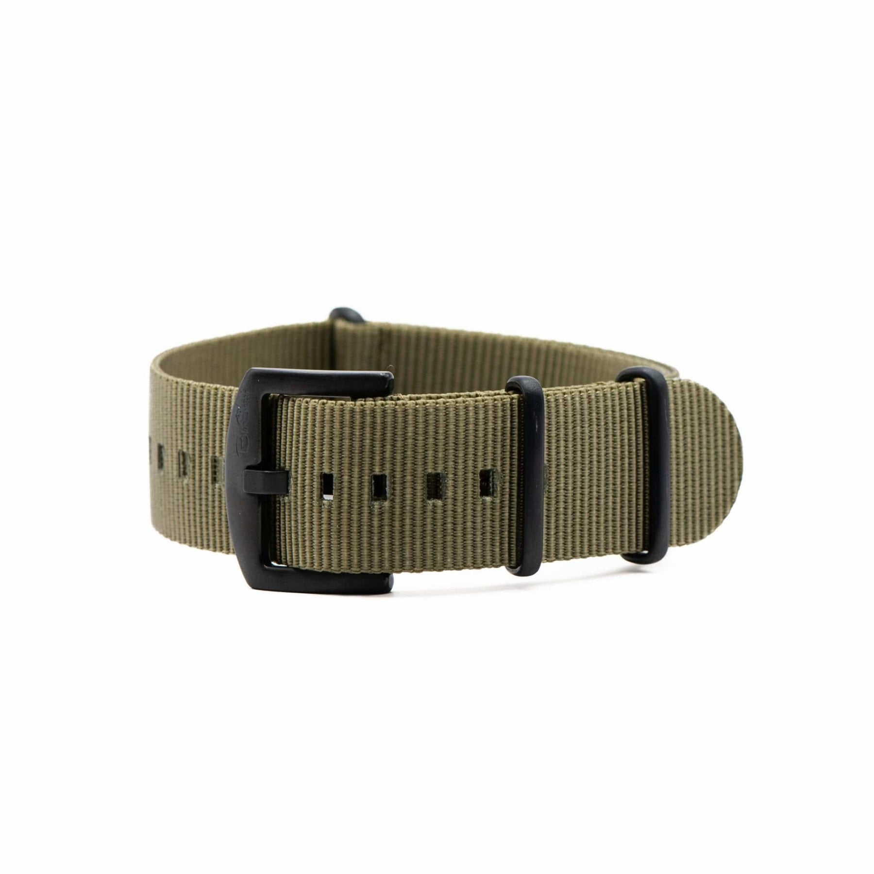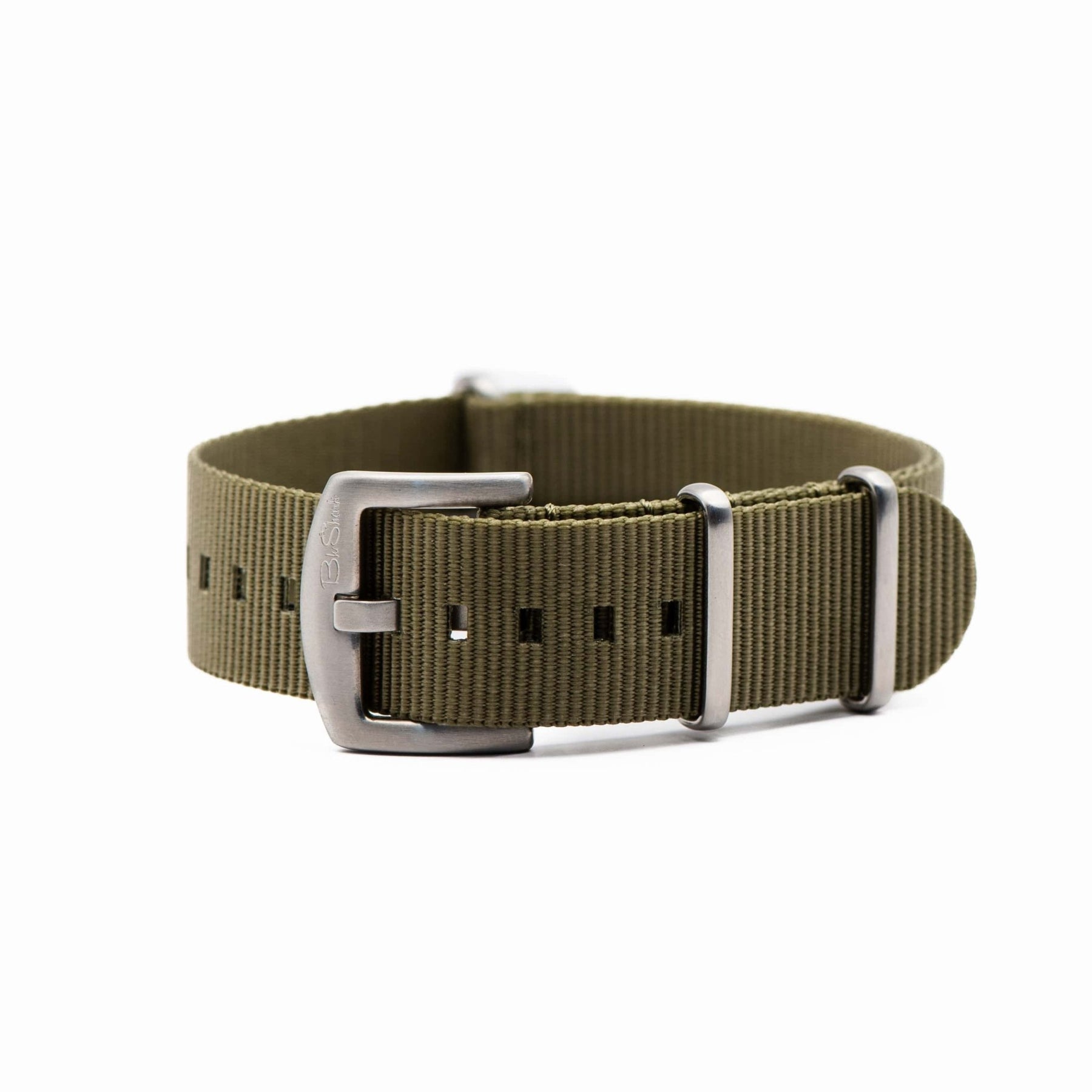 BluShark's Olive Drab green watch strap is a classic style that harkens back to the nylon pass-through watch straps' military roots. All BluShark straps are cleanly stitched around stainless steel hardware.