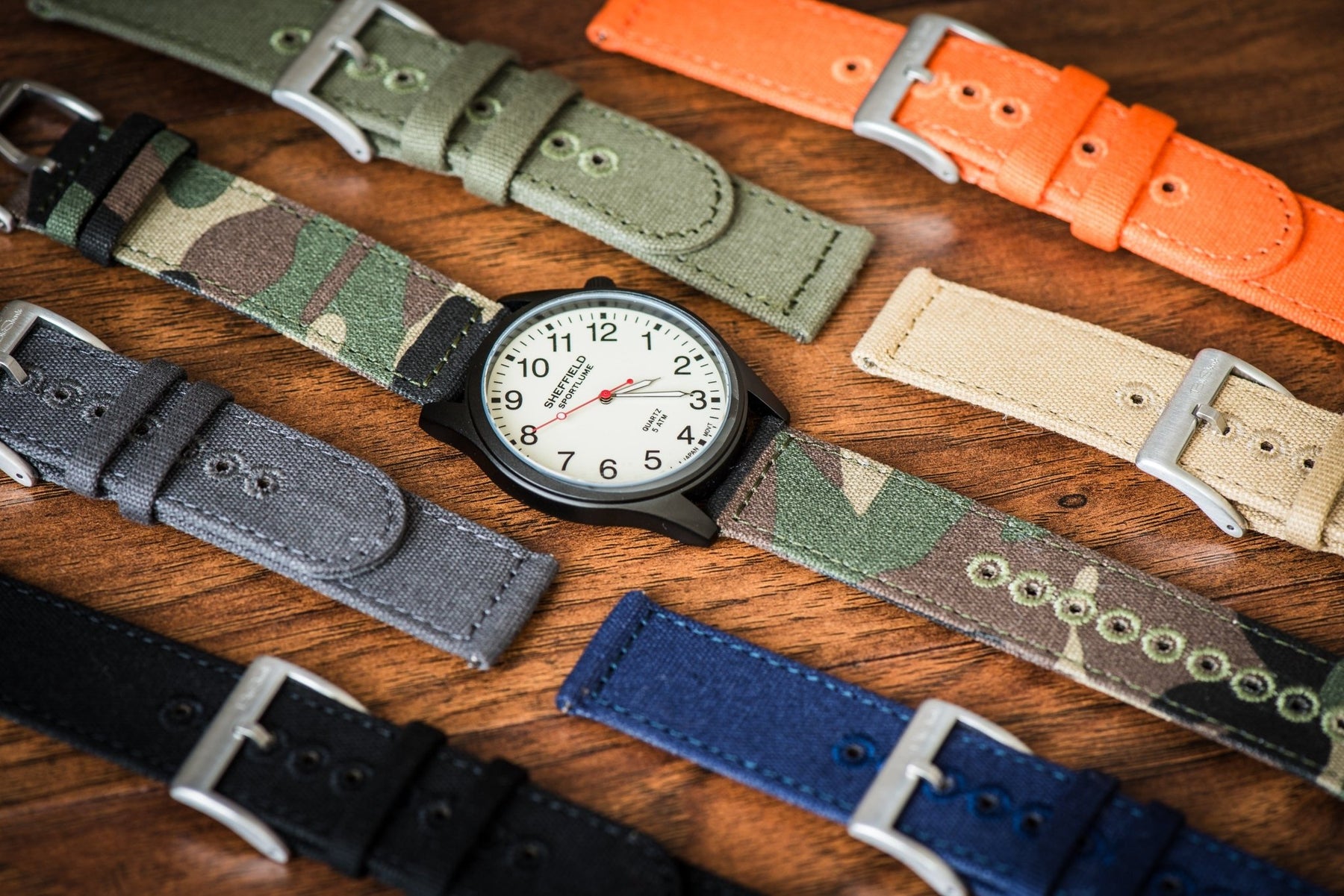 Our CanvaSoft collection provides the rugged canvas look without the stiffness and rough feel of typical canvas watch bands. CanvaSoft straps are only 1.9mm thick and were designed to be extremely soft and pliable. Adorned with a stainless steel buckle and canvas keepers, CanvaSoft straps will be the most comfortable option in your collection. All CanvaSoft straps are equipped with quick release pins for easy strap swaps and reinforced holes to prevent stretching.