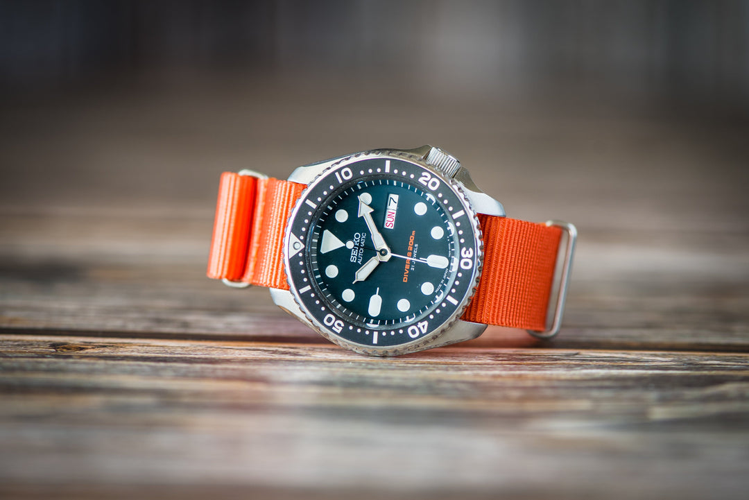 The Orange BluShark strap is our most vibrant and attention-grabbing offering. We love it with black or blue dial watches, but it works equally well with white. All BluShark straps are cleanly stitched around stainless steel hardware.