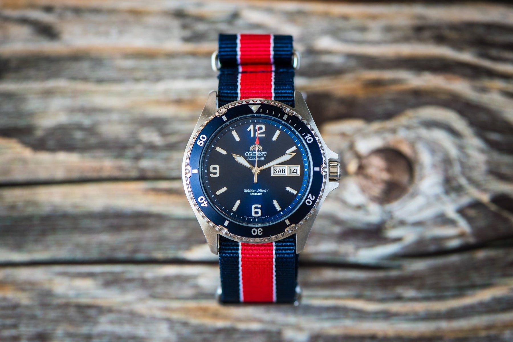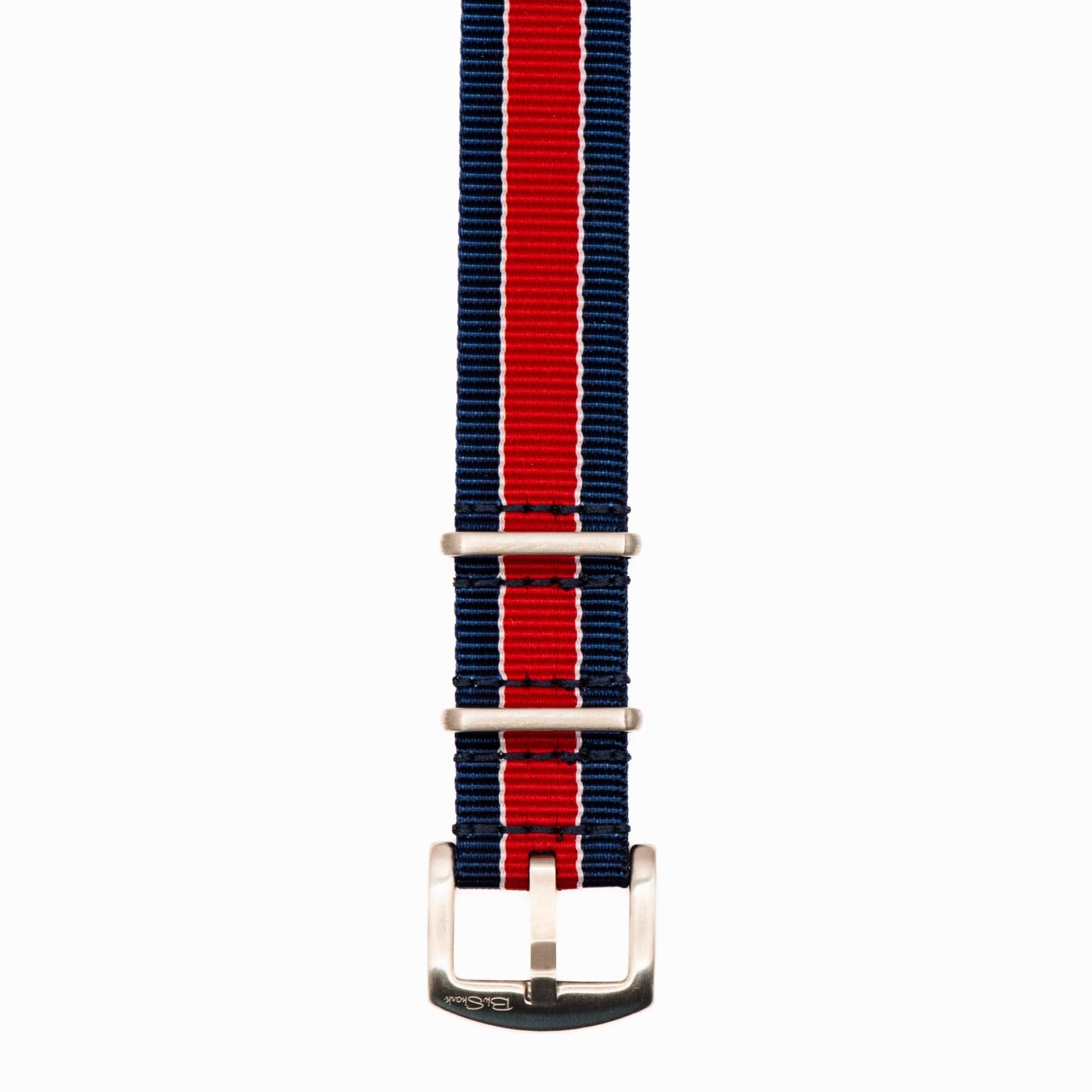 Whether you're matching your Pepsi bezel or showing national pride, our Bond - Navy and Red strap is a great option. Using the 5-stripe Bond pattern with classic navy blue and red. All BluShark straps are cleanly stitched around stainless steel hardware.