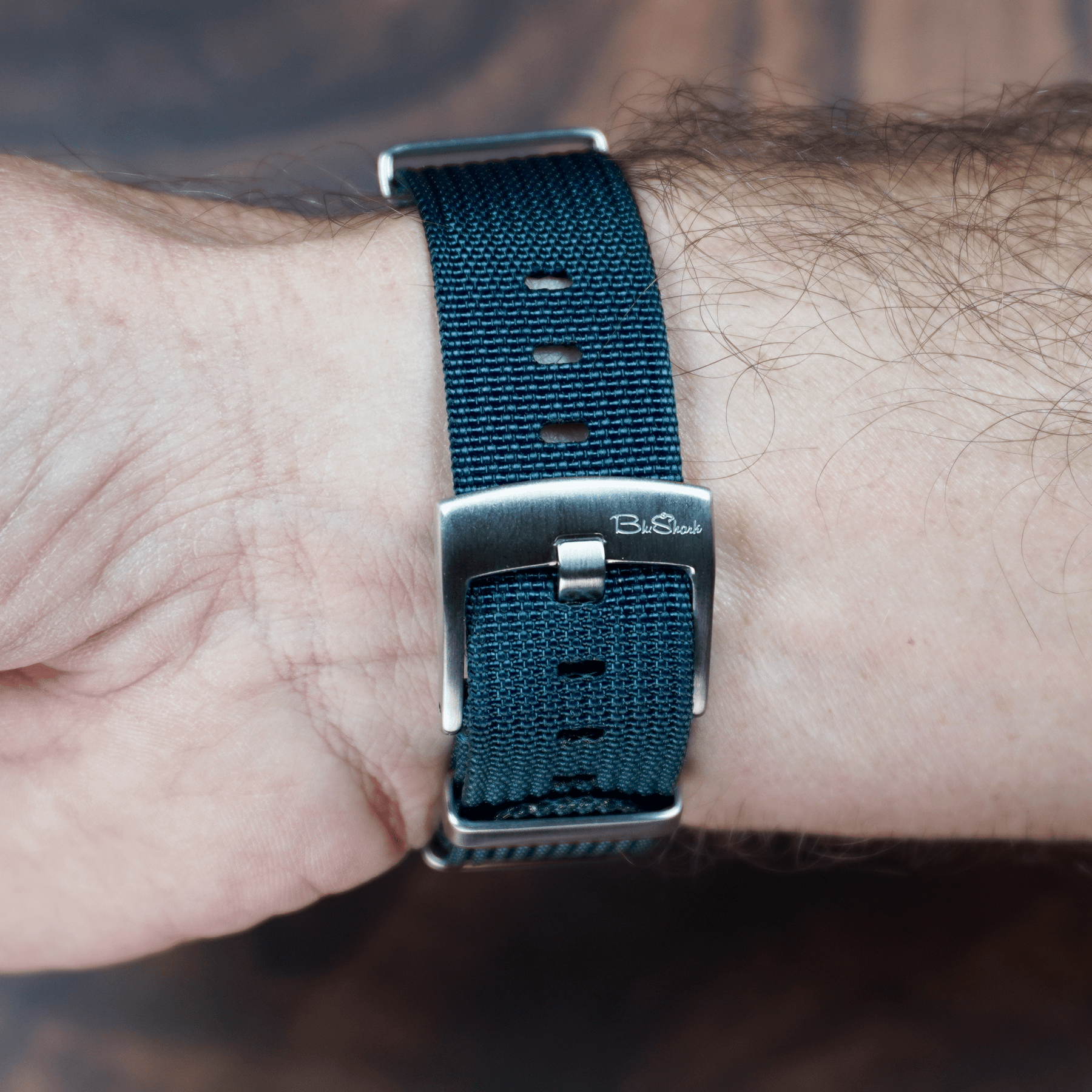 Built to stand apart, the Ribbed Mako FN features the same bold ribbed nylon weave as our Ribbed Single-Pass strap that adds depth and character, a third "faux: keeper that nods to the double-pass military look, a long tail for tucking, an extra sturdy buckle and tongue seen on our AlphaShark straps, and precision oval heat-sealed adjustment holes to minimize fraying over years of wear.