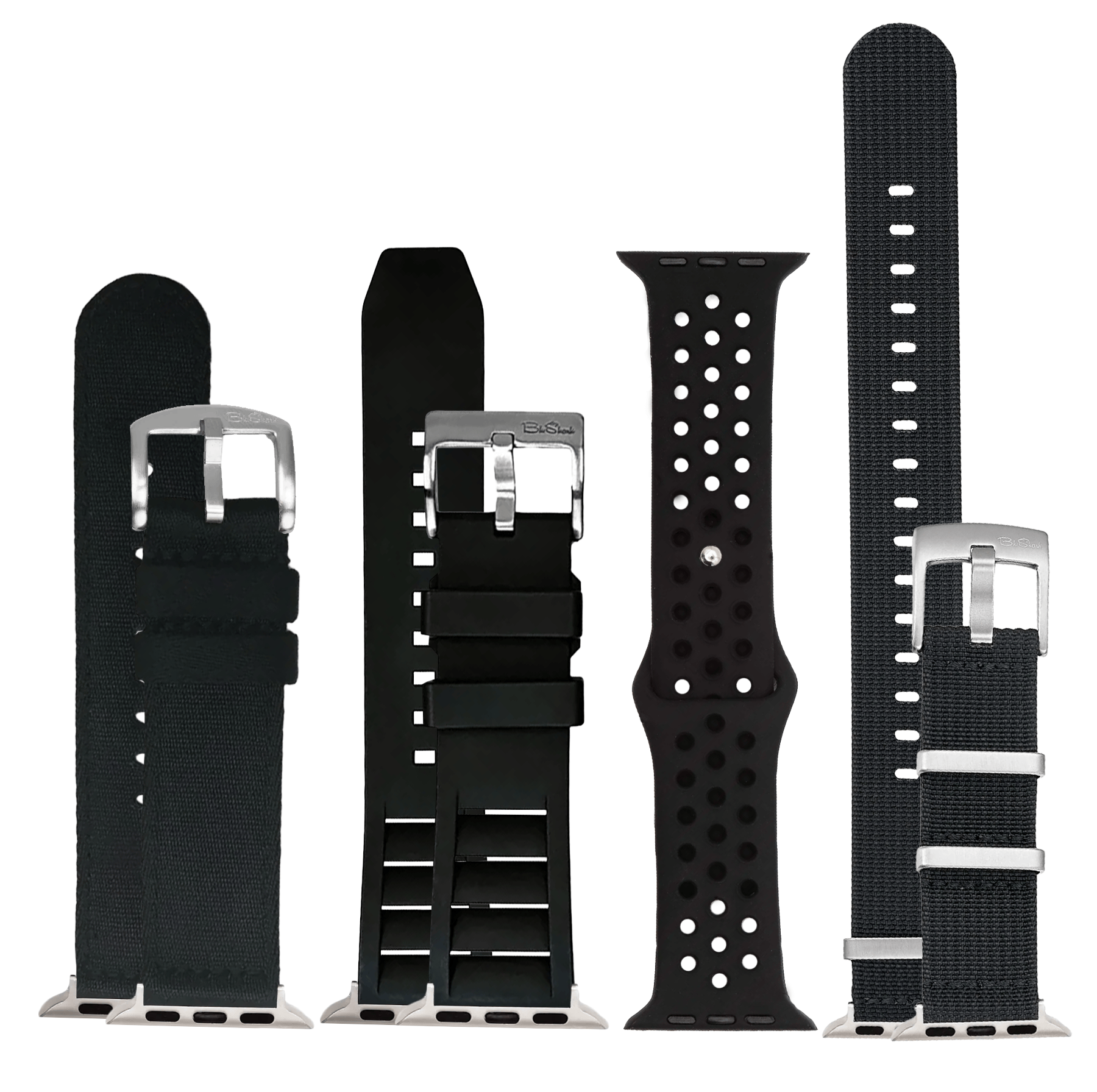 By choosing this set, you’re getting four of our must-have styles for a fraction of the cost. Each strap is selected for its versatility and ability to pair effortlessly with Your Apple Watch, offering incredible value in a single bundle. Perfect for those who appreciate refined designs with an edge, this bundle includes: