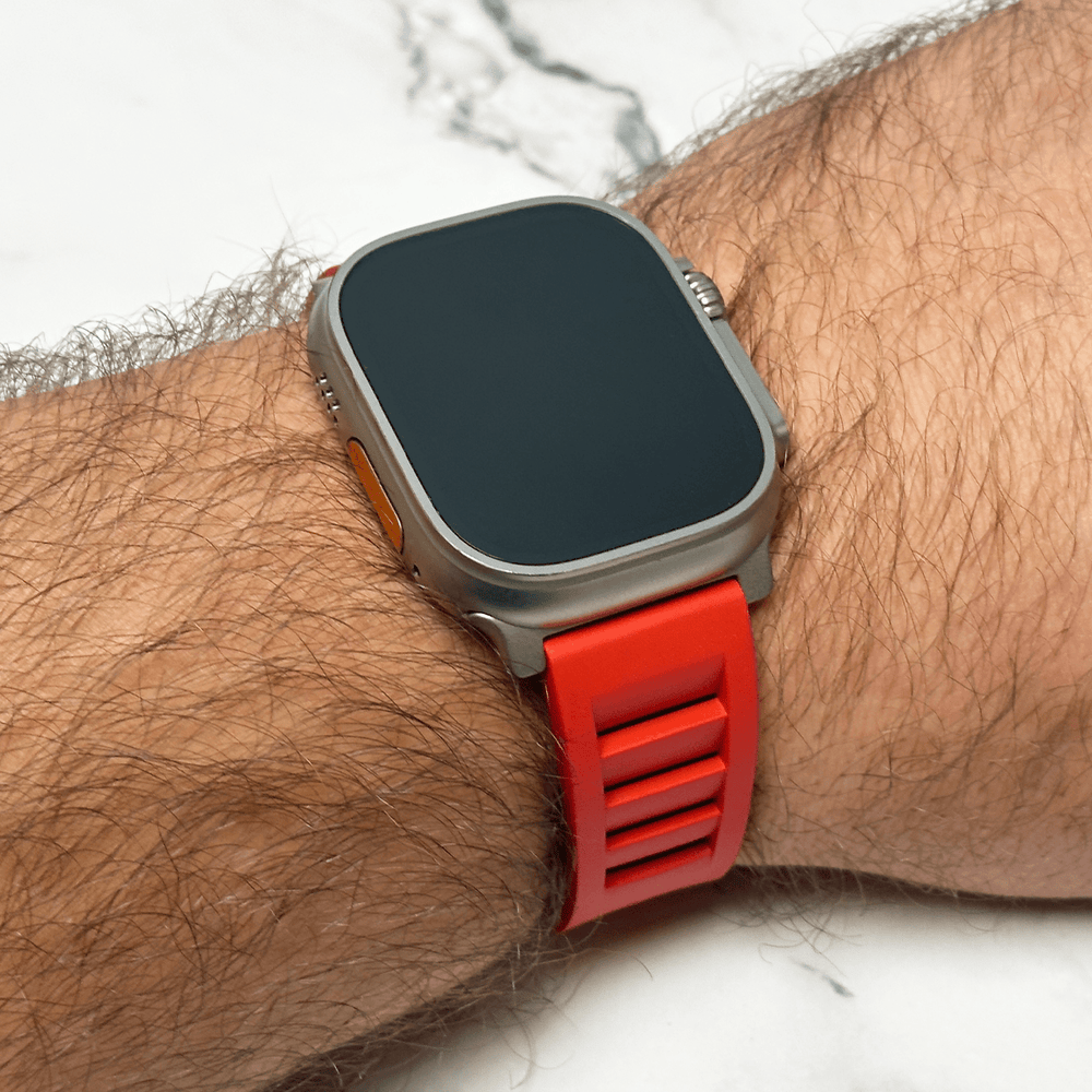 Discover our collection of Apple Watch straps, designed to fit all sizes of Apple Watches in a variety of styles and colors. From sleek and minimalist to bold and vibrant, we offer something for every taste. Choose from our premium FKM Rubber straps for superior durability and comfort, surpassing other rubber and silicone options. For a touch of classic elegance, explore our exquisite leather straps, crafted for timeless appeal. And for a sporty and versatile look, check out our durable nylon straps, perfect for any adventure. Elevate your Apple Watch with our diverse selection today!