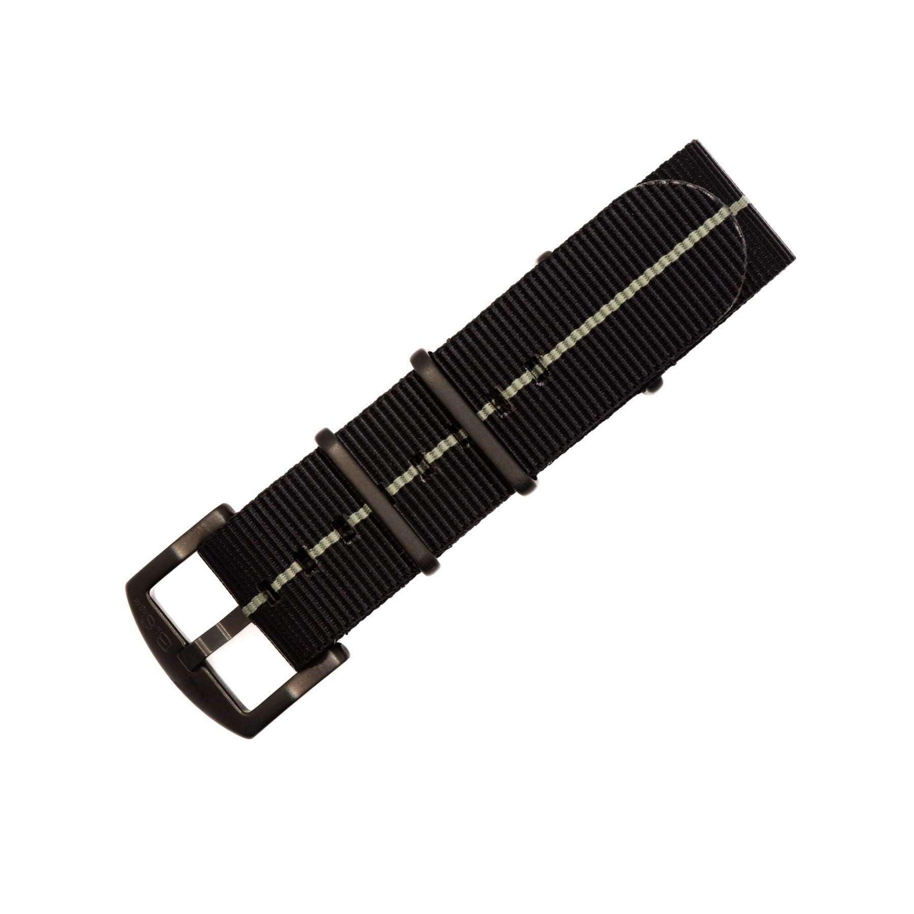 Black Ash combines the colors of black and gray for a smoky ash look. We prefer it with casual watches. As with all BluShark straps, this one is made with high-grade ballistic nylon and stainless steel hardware. BluShark straps are clean-stitched unless otherwise noted.