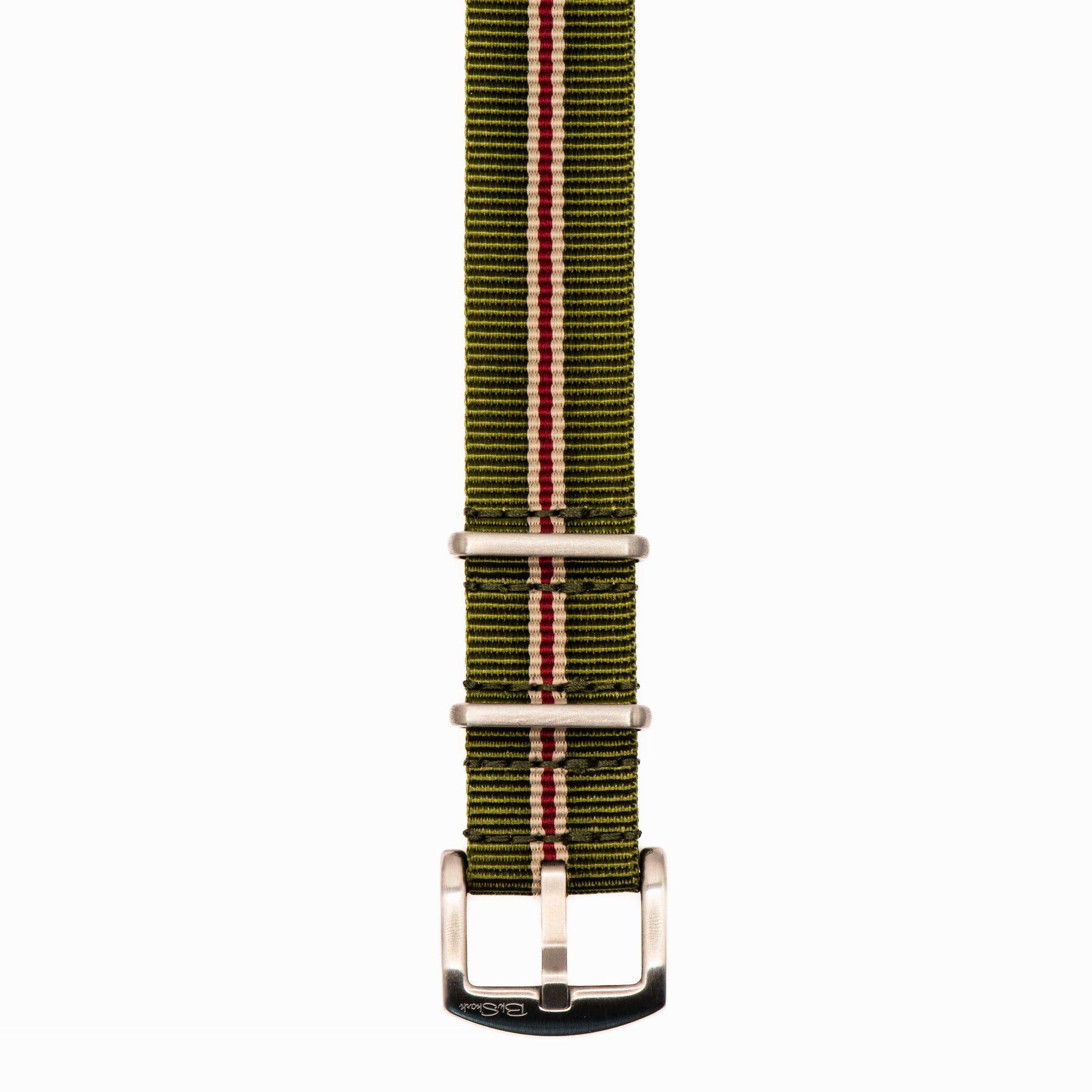 BluShark's English Holly watch strap manages to be both classic and unique with its muted tones and subtle pop of red color. The versatile strap can be paired with a variety of watch types and colors. All BluShark straps are cleanly stitched around stainless steel hardware.