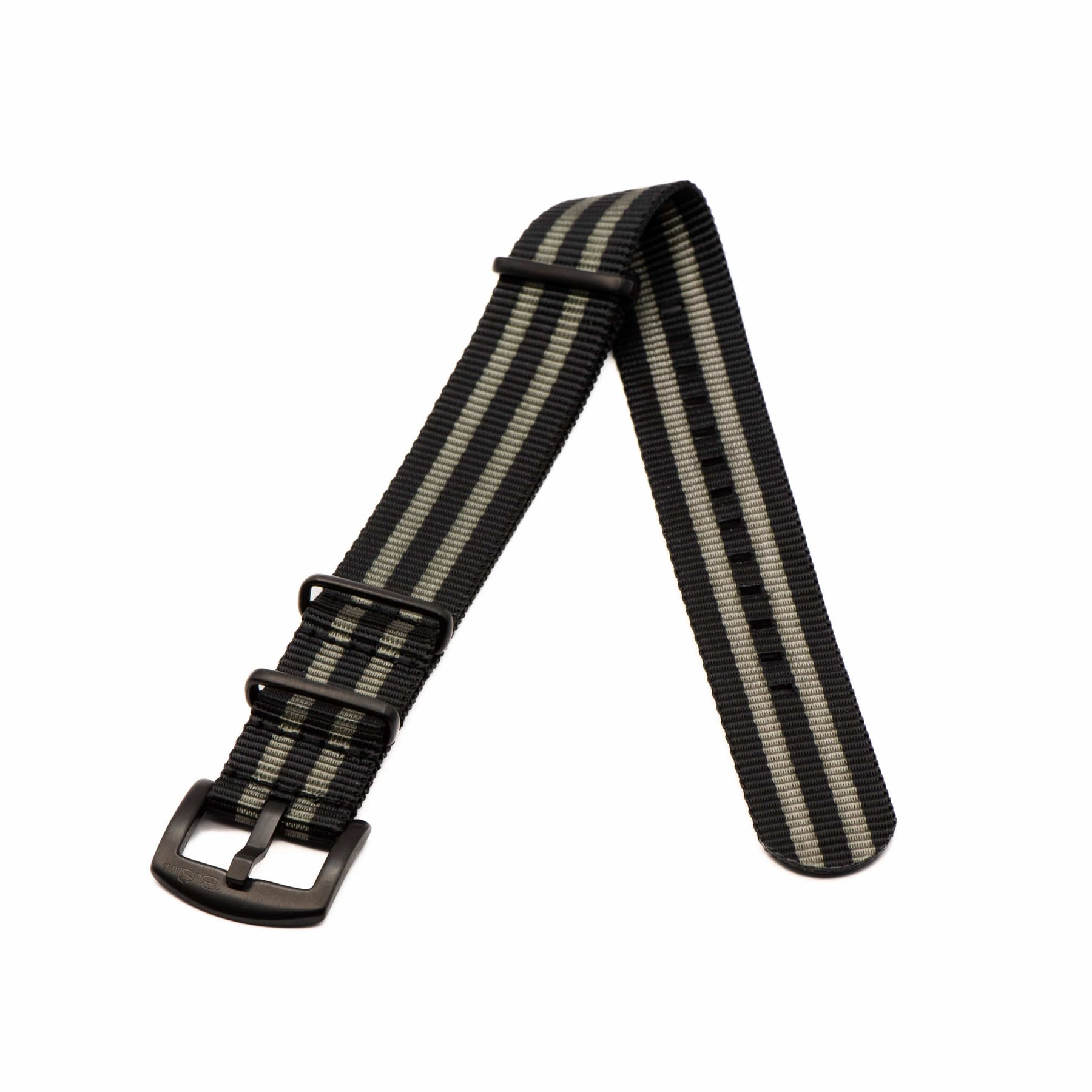 One of our best-sellers and for good reason. The iconic black and gray striped strap, widely known as the Bond strap, is a classic design and looks particularly beautiful on dive watches. As with all BluShark straps, this one is made with high-grade ballistic nylon and stainless steel hardware. BluShark straps are clean-stitched unless otherwise noted.