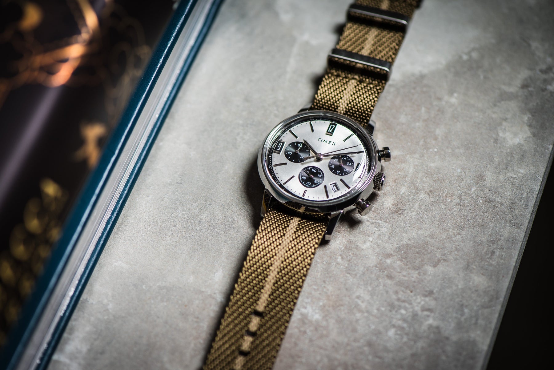 Fit Details: The Knit Weave Strap is designed with extra length and multiple adjustment holes to accommodate a wide range of wrist sizes with enough strap to give that classic military look.