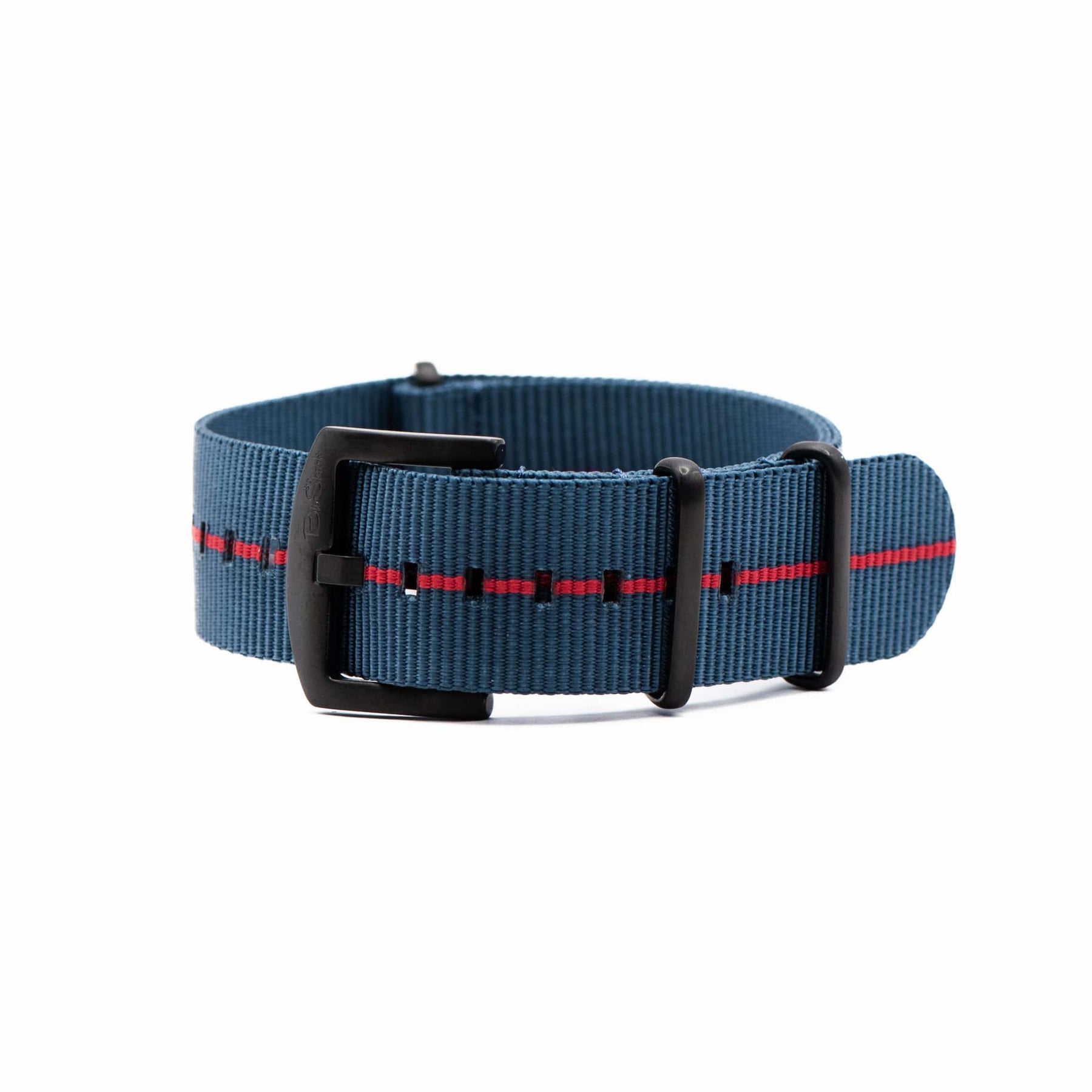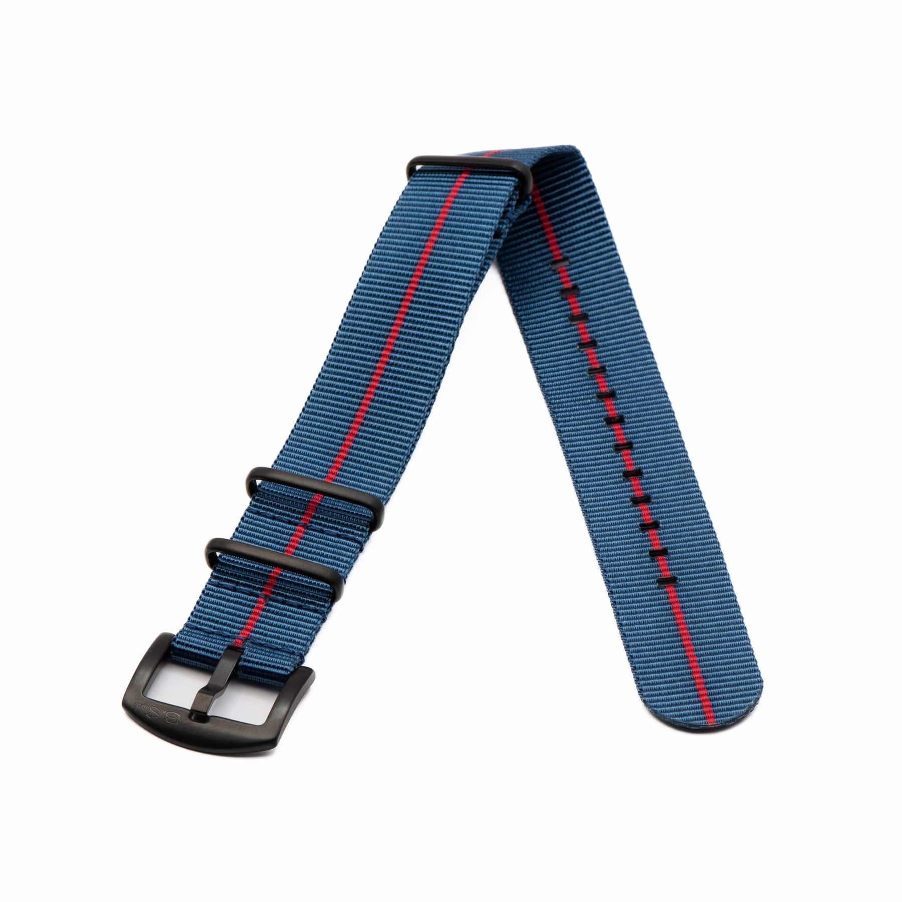 Siren combines the colors red and navy blue to create the intense look of a flashing siren. We prefer it with casual watches. As with all BluShark straps, this one is made with high-grade ballistic nylon and stainless steel hardware. BluShark straps are clean-stitched unless otherwise noted.