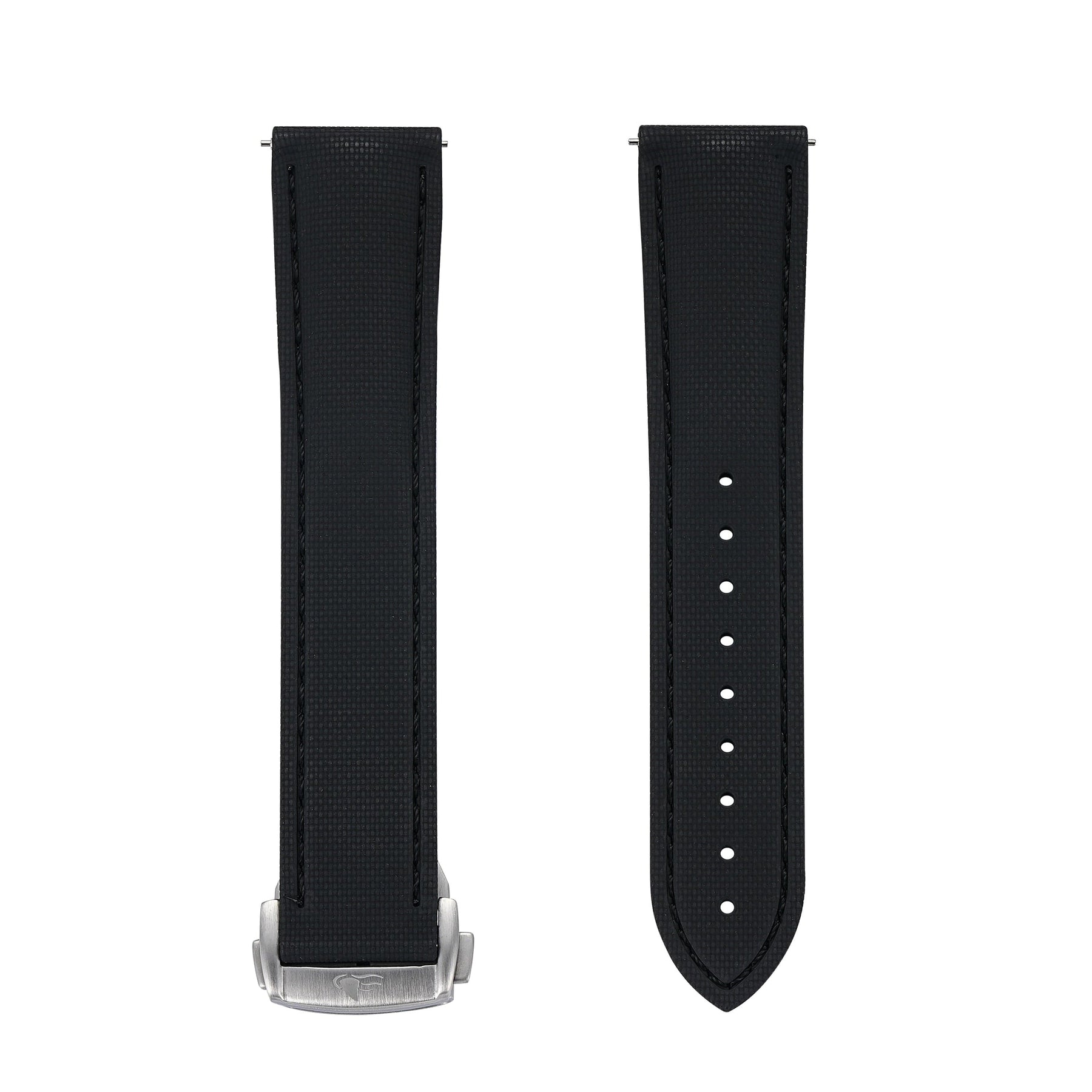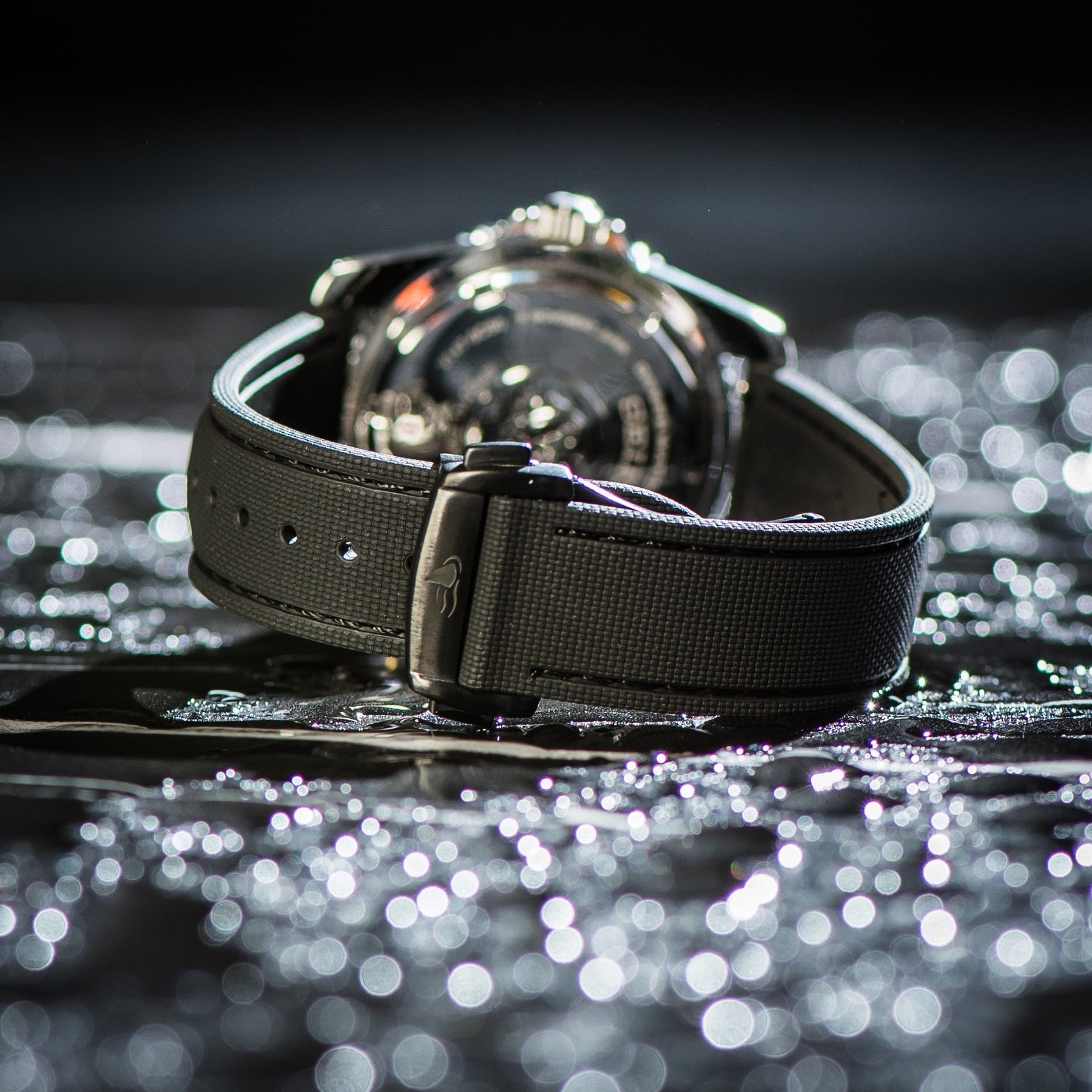 Introducing the Rubber Sailcloth Deploy — BluShark’s first two-piece FKM Rubber watch strap with a sleek deployment clasp. Designed for dive watches, field watches, and chronographs, it also adds a sporty, adventurous touch to any watch. Perfect for everything from ocean dives and rugged trails to Sunday jogs or simply upgrading your everyday style.