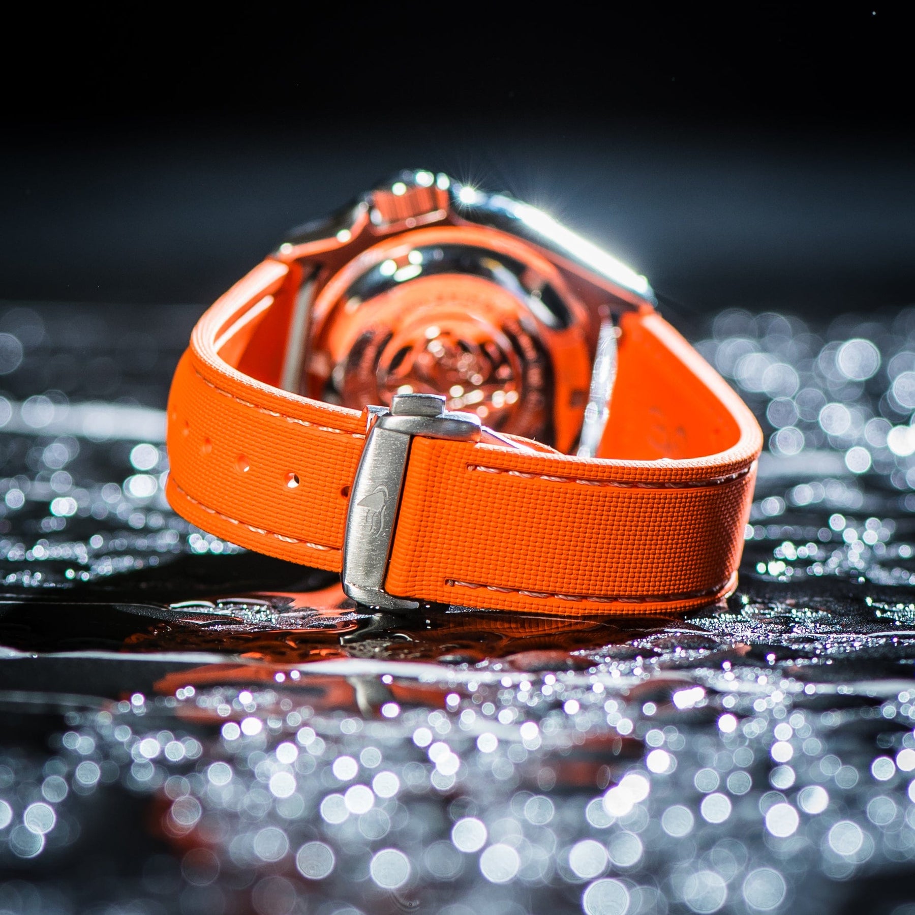 The deployment clasp offers a nearly seamless fit, letting you pop your watch on and off effortlessly, no more struggling with buckles or tucking the tail under keepers.Ā Quick-release spring bars make swapping straps faster than ever, letting you install or remove the strap without any tools, effortlessly changing up the look of your watch day to day. Soft, durable, and breathable, the FKM Rubber backing keeps your wrist comfortable while maintaining a refined, sporty look.