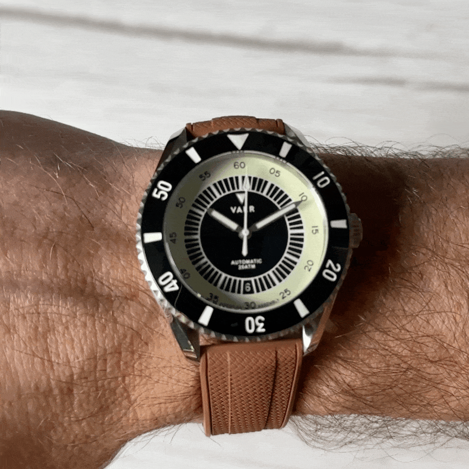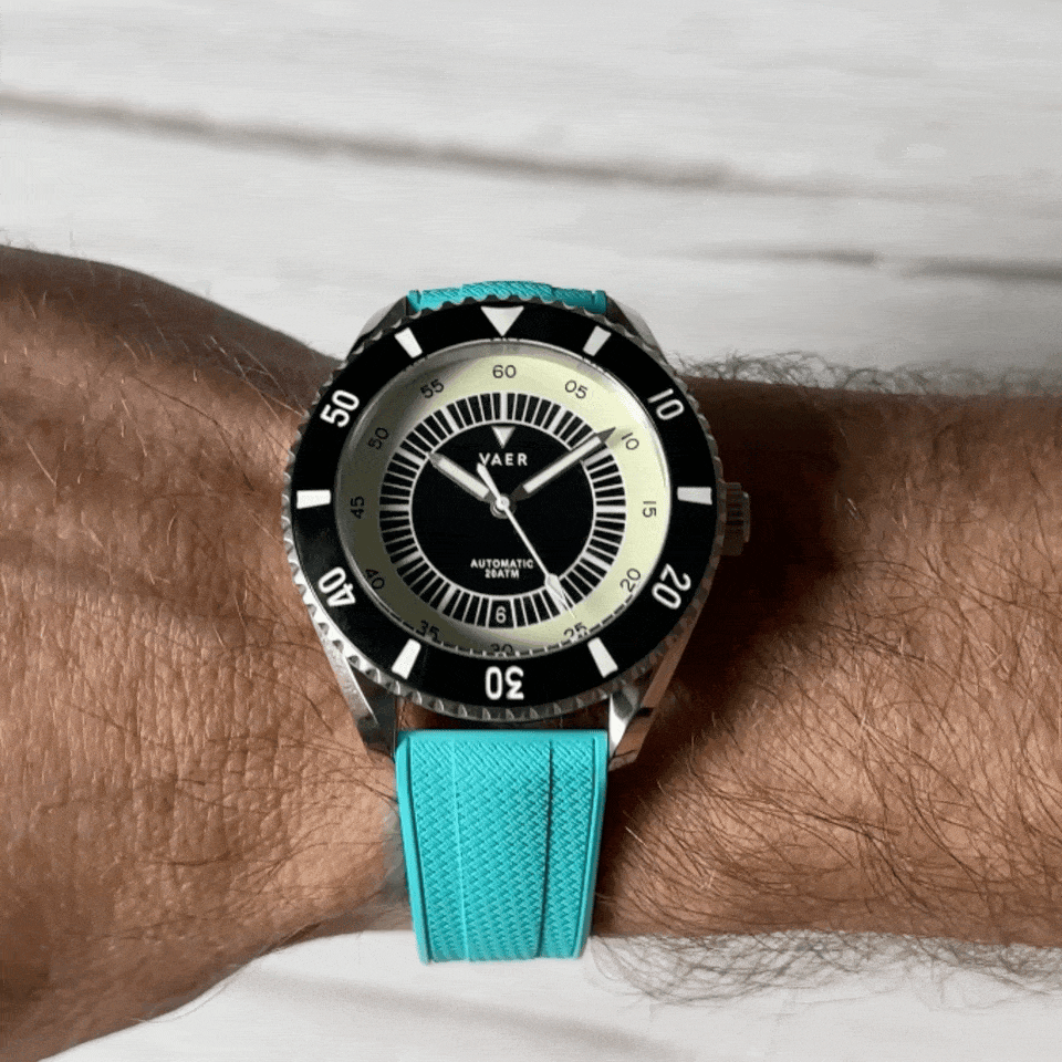 The Shark Skin rubber watch strap takes its name and inspiration from the unique texture of a shark’s skin. Shark skin is naturally smooth when brushed in one direction but offers a sharp, hydrodynamic surface when moved against the grain, reducing drag and improving efficiency in the water. While this strap’s soft texture doesn’t replicate that same contrast, its light, flexible design is a nod to the streamlined adaptability of a shark’s anatomy. Learn More