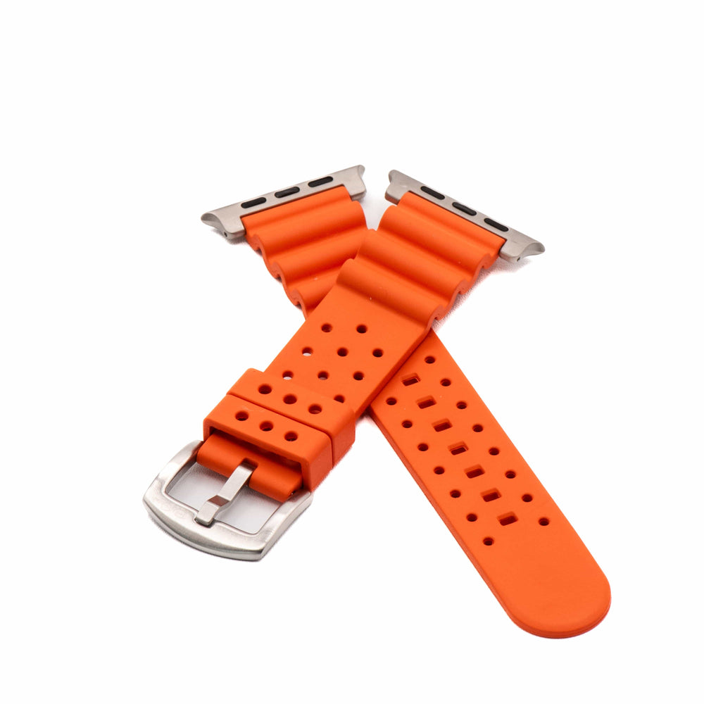 The Sport Rubber watch strap is soft yet durable, highly flexible, water and sweat proof, perfect for outdoor activities like swimming and other sports, as well as being ideal for everyday use. Black, blue and orange colors will allow you to find your favorite pairing with your Apple Watch Ultra.