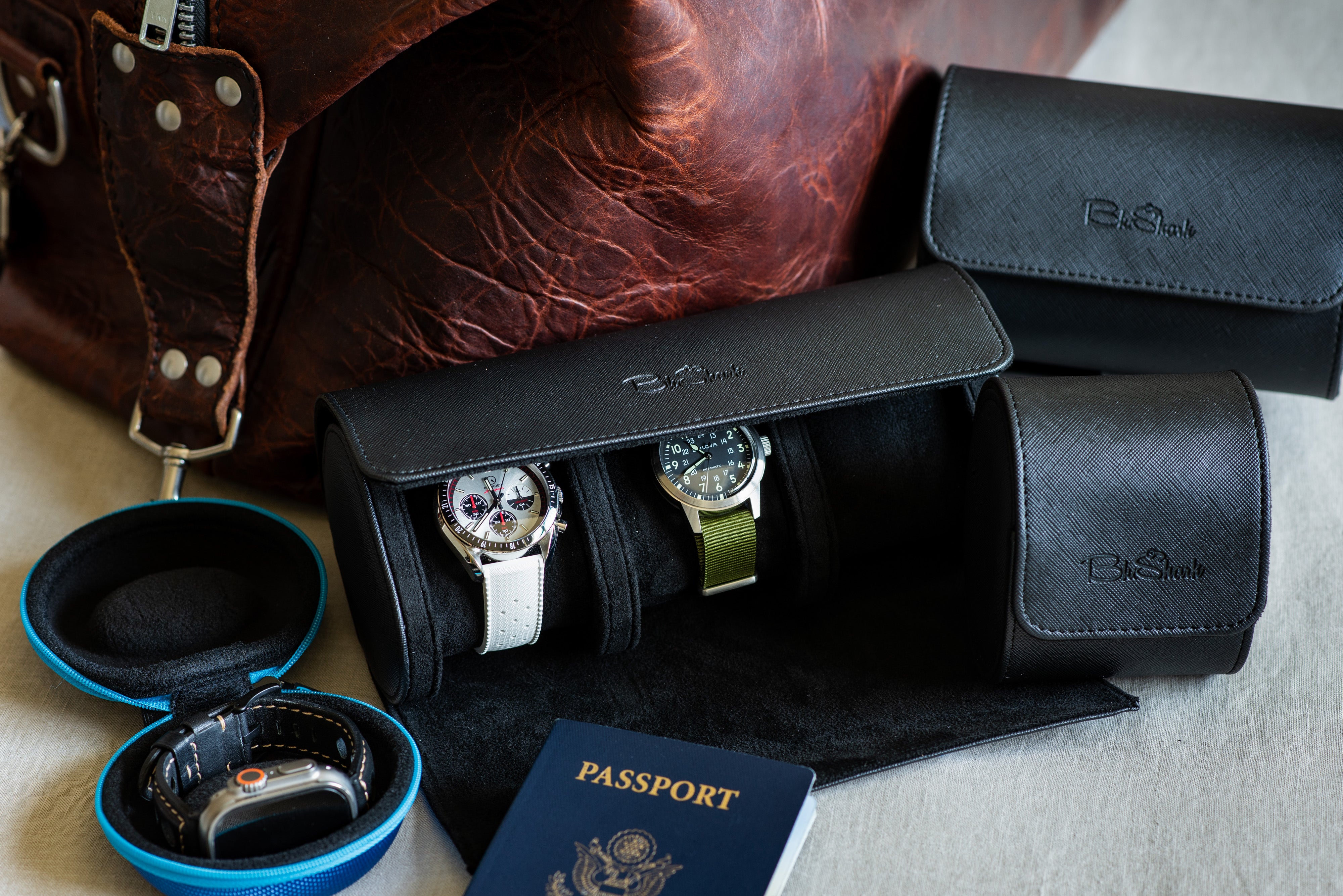 Protect your watch collection wherever you go with our premium watch travel cases. Whether you prefer the elegance of our leather watch carriers or the durability of our sporty travel pods, we have the perfect case to keep your timepieces safe and secure. Designed for both style and protection, our cases feature cushioned interiors, sturdy exteriors, and compact designs for easy packing. Whether you're storing a single watch or multiple timepieces, travel with confidence knowing your watches are well-protected. Explore our collection and find the perfect case for your next adventure.