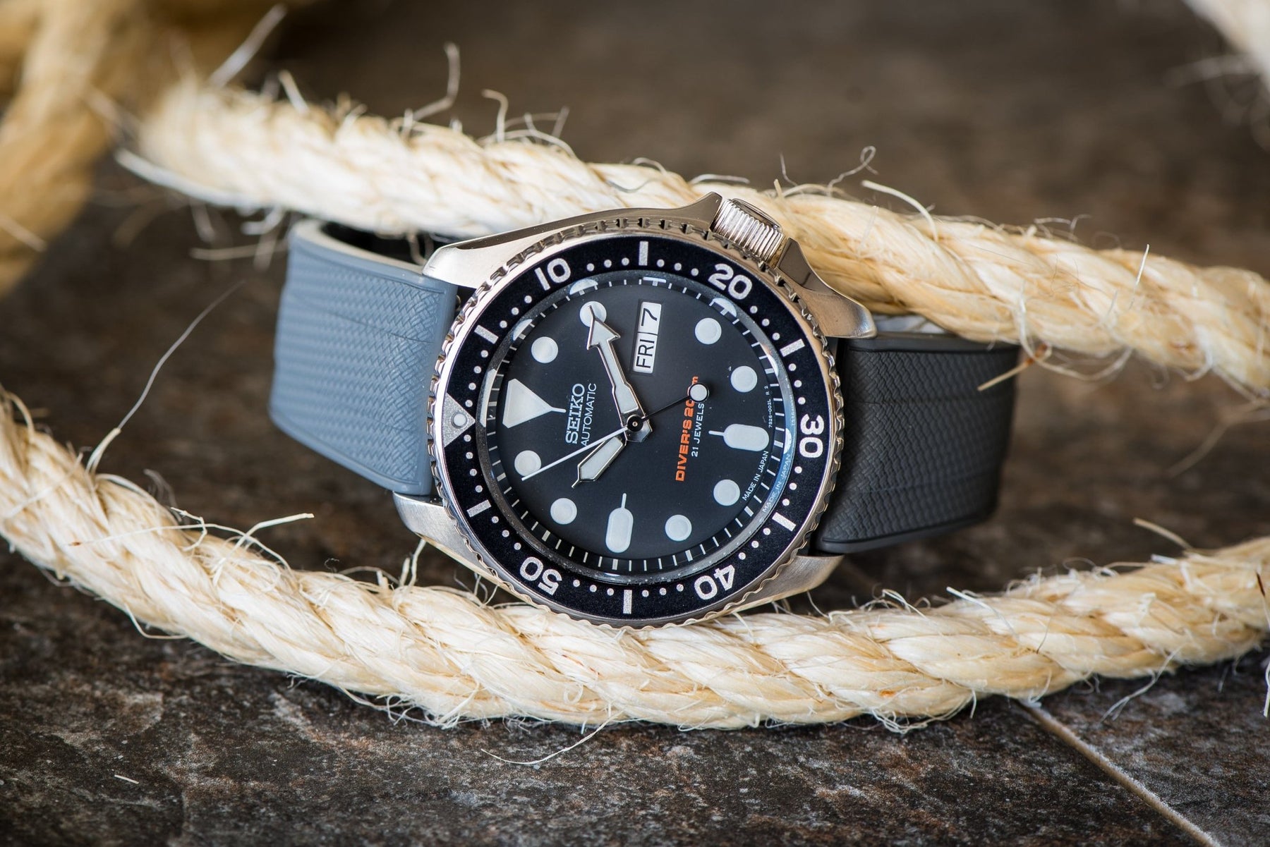 The Shark Skin rubber watch strap takes its name and inspiration from the unique texture of a shark’s skin. Shark skin is naturally smooth when brushed in one direction but offers a sharp, hydrodynamic surface when moved against the grain, reducing drag and improving efficiency in the water. While this strap’s soft texture doesn’t replicate that same contrast, its light, flexible design is a nod to the streamlined adaptability of a shark’s anatomy.