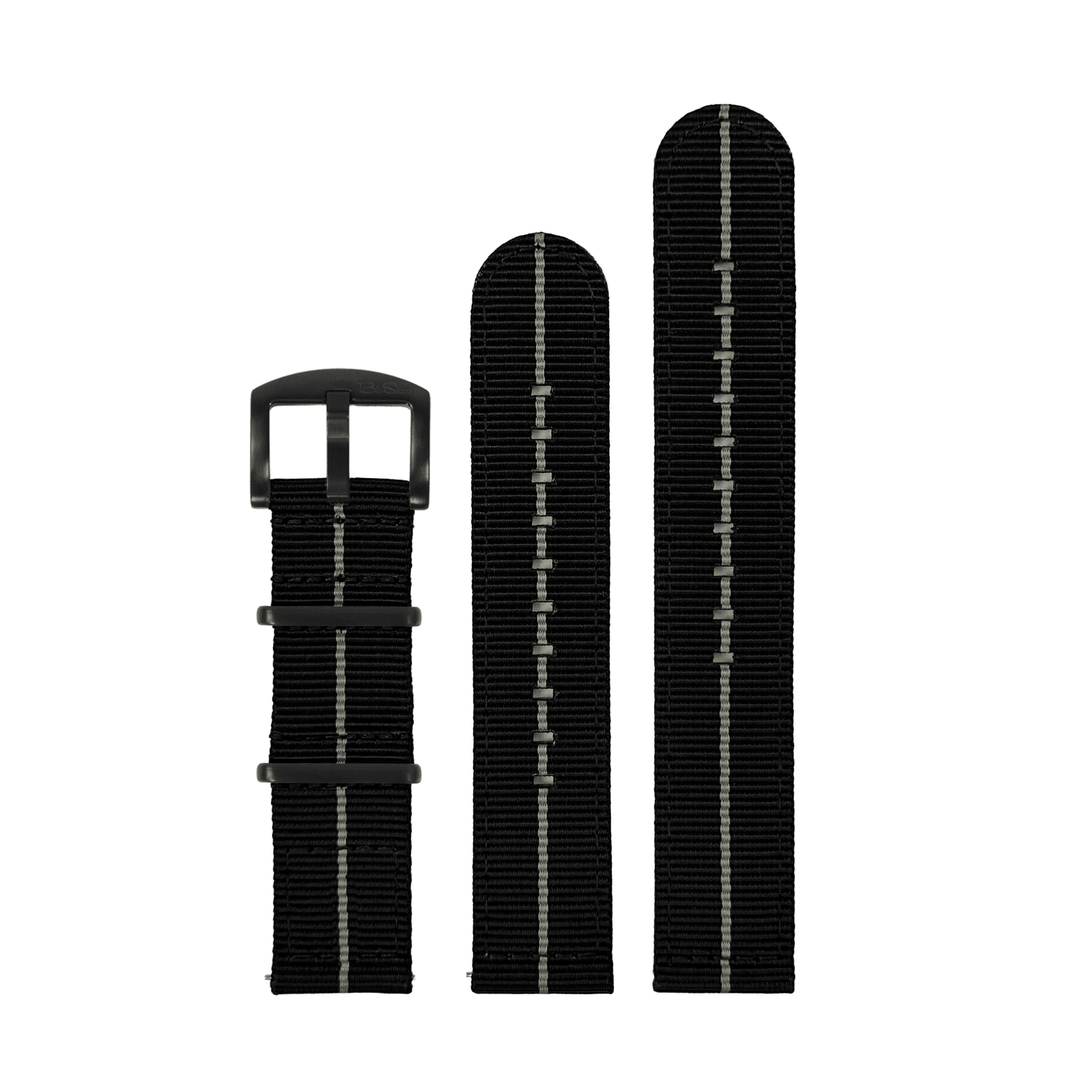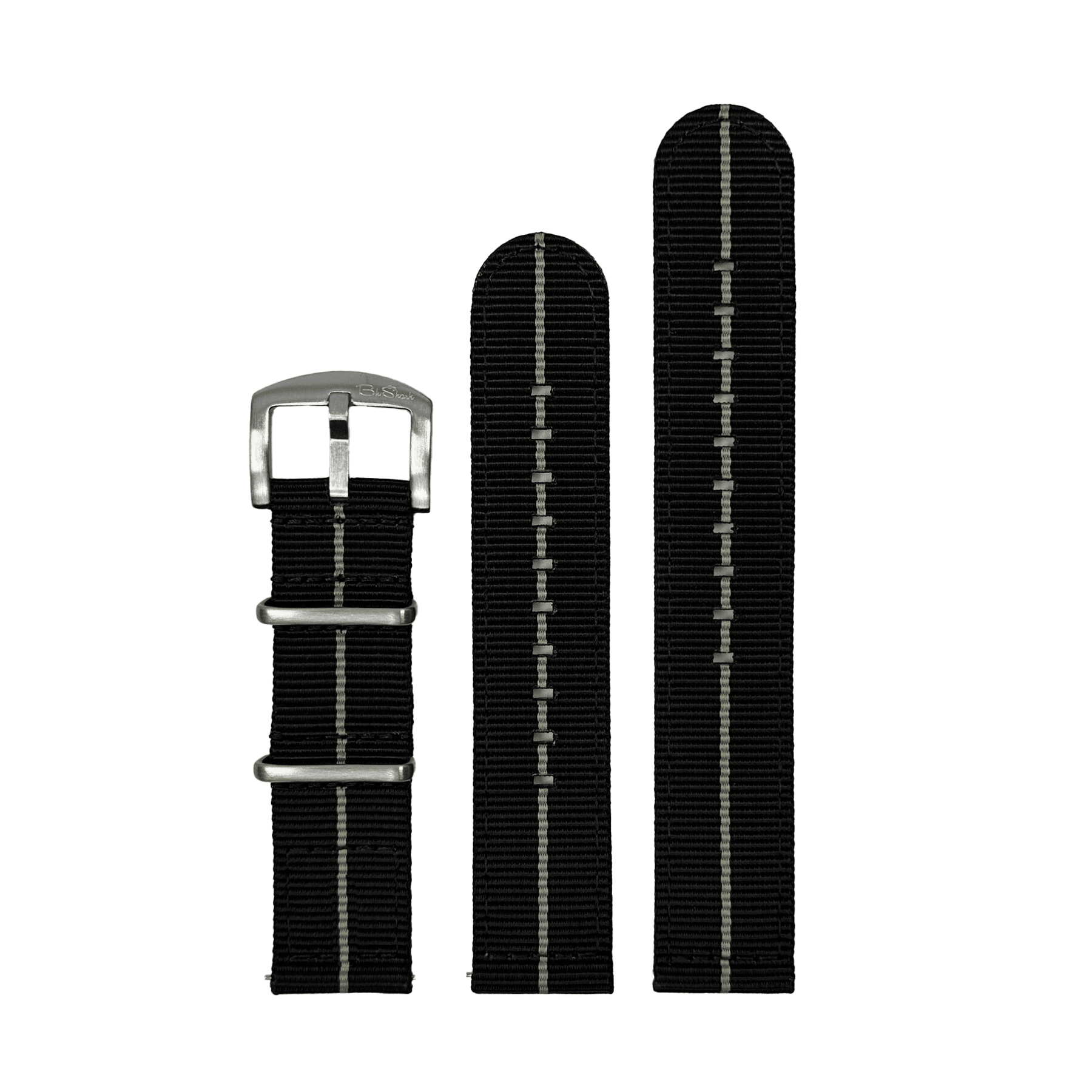 Introducing The O2 Strap by BluShark Straps. A rugged two-piece version of the ever popular BluShark Straps Original. Who doesn't love a good watch caseback design? The O2 Strap allows you to admire that unique caseback and is equipped with quick release pins, allowing you to swap your straps with ease. The double layer of nylon adds extra durability, effectively doubling the strength of the strap, while the sliding second keeper ensures your strap stays tucked in just the way you like it, offering personalized comfort and style.