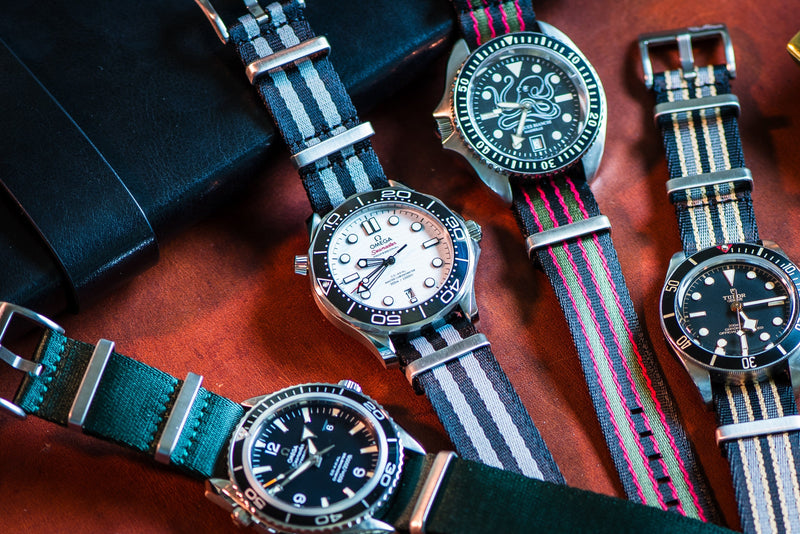 Discover BluShark’s collection of premium Pass-Through Watch Straps, available in both single-pass and double-pass military-style designs. Whether you're looking for a sleek, low-profile fit or added security, our pass-through straps offer reliable performance and timeless style. Choose from durable nylon or flexible rubber options, designed to handle everyday wear or rugged adventures.