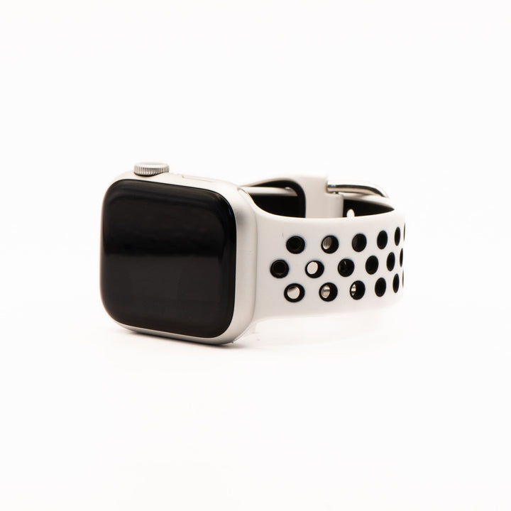 The Silicone Sport Buckle Apple Watch Band is designed for when you need to push it to the limit. Made from smooth, flexible perforated silicone, this band is perfect for keeping up with your active and busy lifestyle. It’s water and sweat-resistant, so whether you're hitting the gym or braving the outdoors, your watch stays protected.