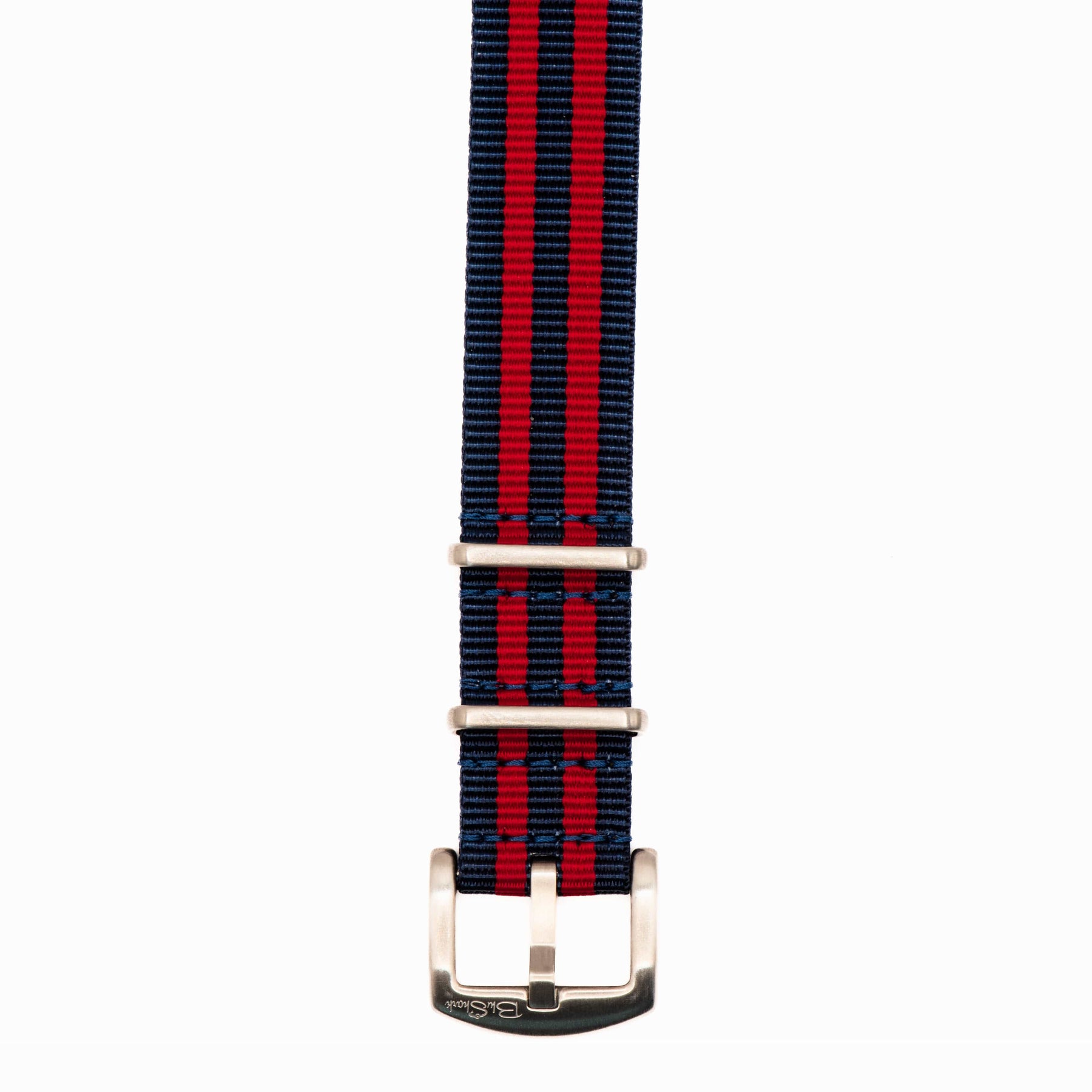 Whether you're matching your Pepsi bezel or showing national pride, our Bond Navy & Red strap is a great option. Using the 5-stripe Bond pattern with classic navy blue and red. All BluShark straps are cleanly stitched around stainless steel hardware.