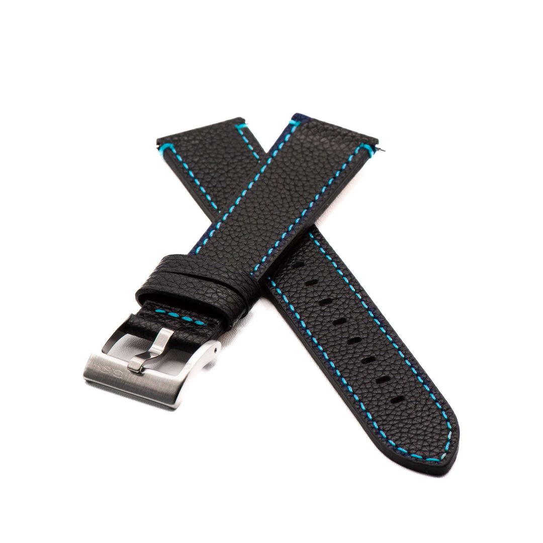 BluShark's Contrast Stitch leather watch bands are the perfect way to combine elegance and customization for your favorite watch. The black leather has a high quality "shrunken" finish and the contrast stitching is available in multiple colors to pair with your watch's color accents. As with all of our watch straps, these leather watch bands are guaranteed to be free of defect for the life of the product.