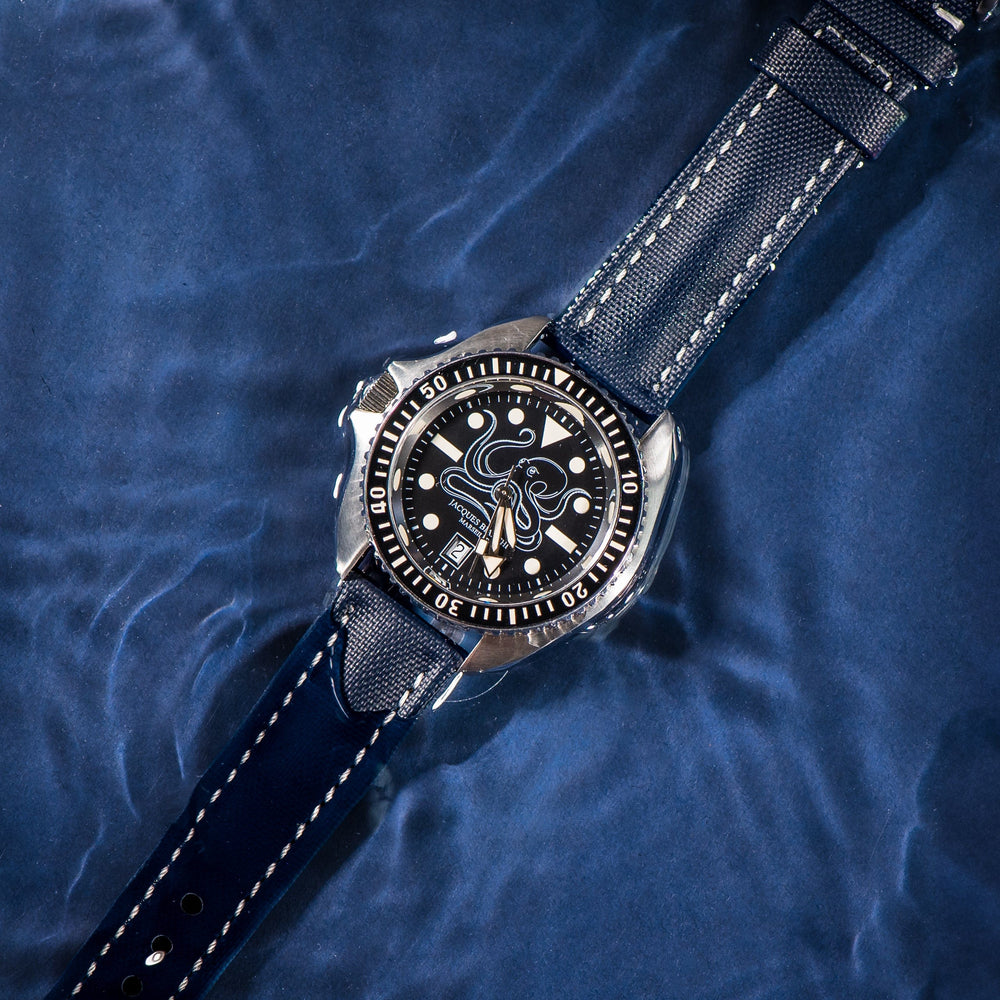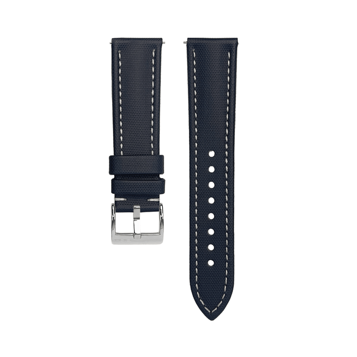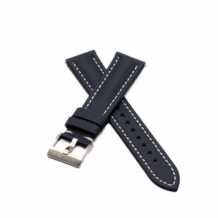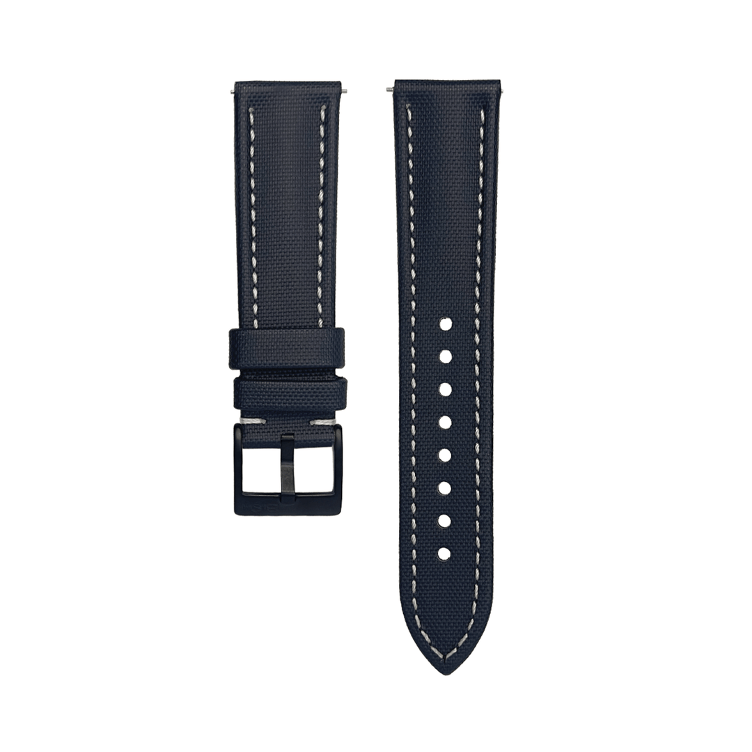 The Material: Our sailcloth watch strap is made from durable PVC rubber, embossed with a sailcloth-style pattern that adds just the right amount of texture and character. It strikes a great balance between rugged and refined—tough enough for everyday wear, but with a clean, stylish look that works just as well with a dress watch. The rubber base makes it water-resistant and easy to maintain, while the patterned finish gives it a unique, modern edge.