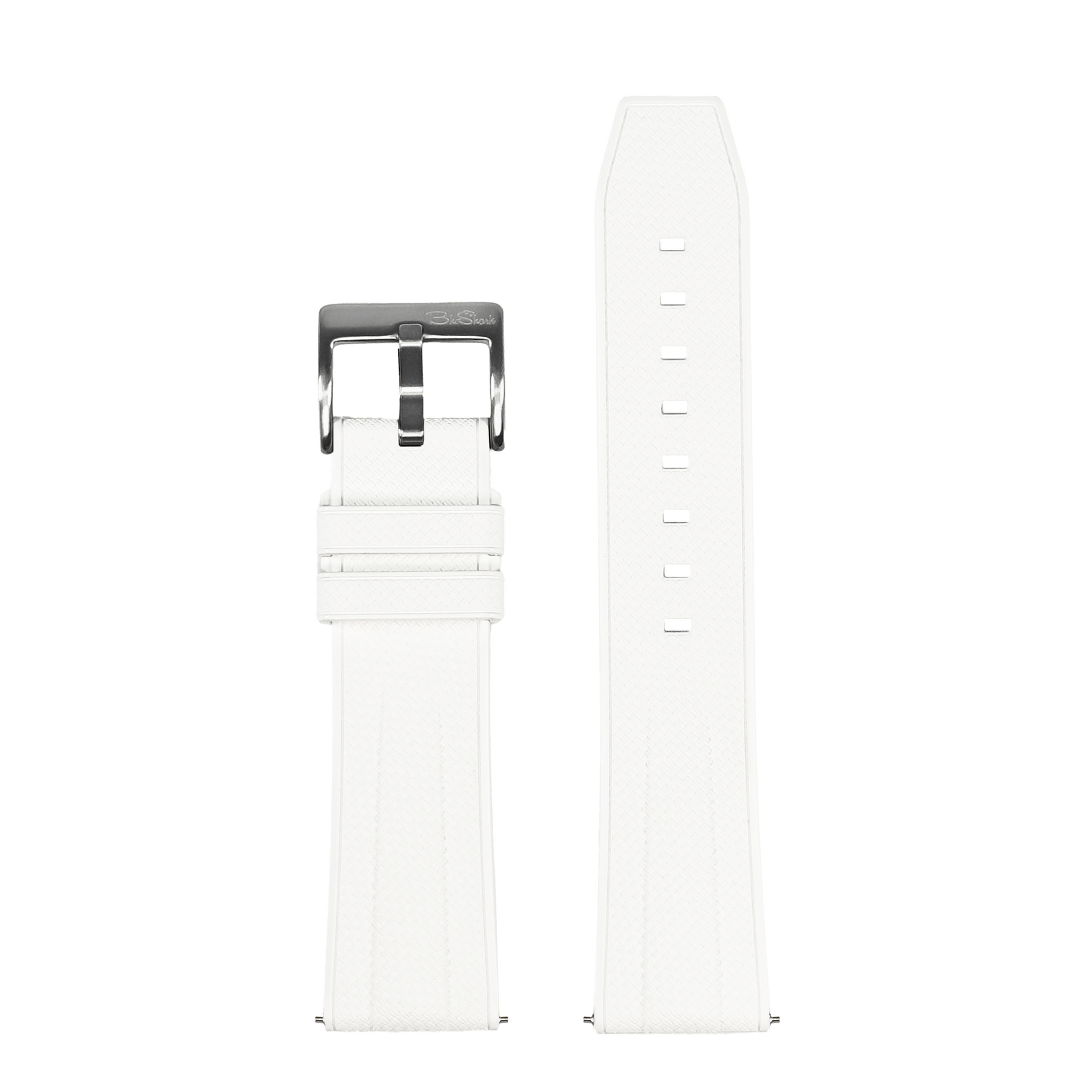 Crafted from premium FKM rubber, it boasts stainless steel hardware in Brushed or PVD Black finishes, fixed and adjustable keepers, and quick release pins for easy strap changes. Its exceptional durability and resistance to water make it a versatile companion for any adventure.